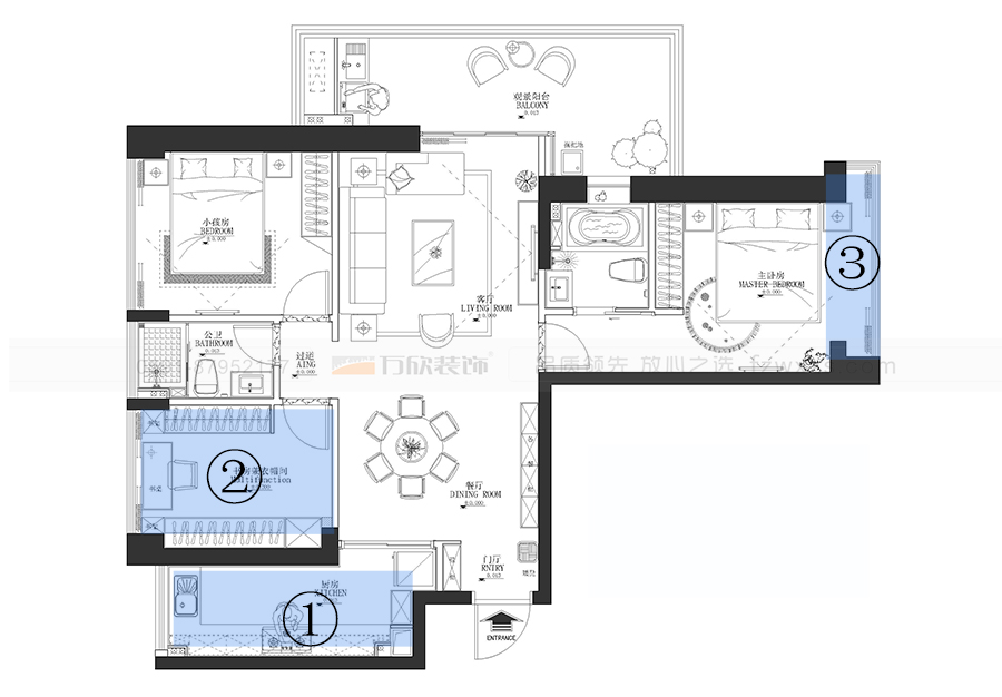 ③ 拆掉飄窗,將主臥陽臺納入室內(nèi),擴大了室內(nèi)面積。