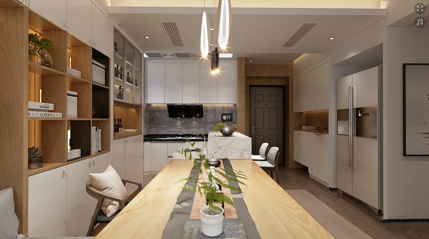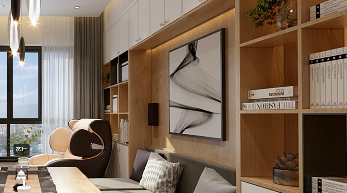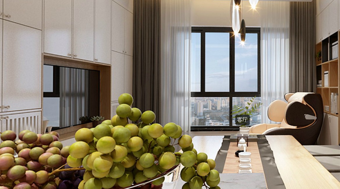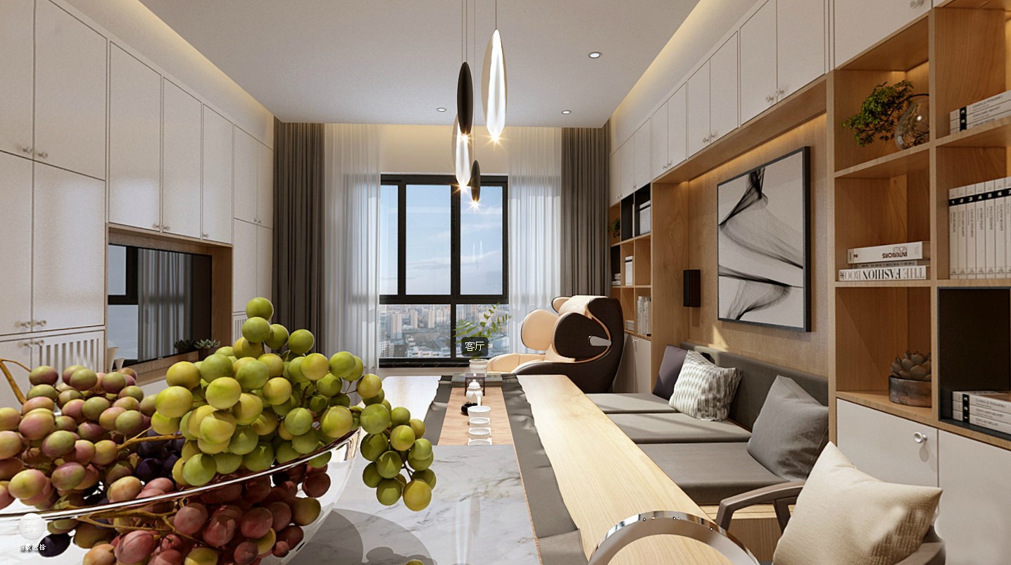 設(shè)計理念丨本案在設(shè)計上充分考慮中小戶型空間尺度問題,在設(shè)計上以現(xiàn)代風(fēng)格為主,融入簡潔的北歐元素和日式色彩,電視背景沙發(fā)背景運用大面積白色柜子,地面配淺色木紋大板仿磚開放式廚房餐廳客廳一體化(LDK)設(shè)計,加上適度的燈光裝飾也使居室空間充滿溫馨的氣息,既能給人在空間得到精神和身體上的放松,同時又能滿足女主人收納儲物以及男主人舒適品茗的要求。