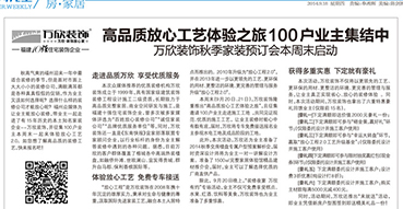 萬欣裝飾2014秋季放心家裝預定會華麗綻放