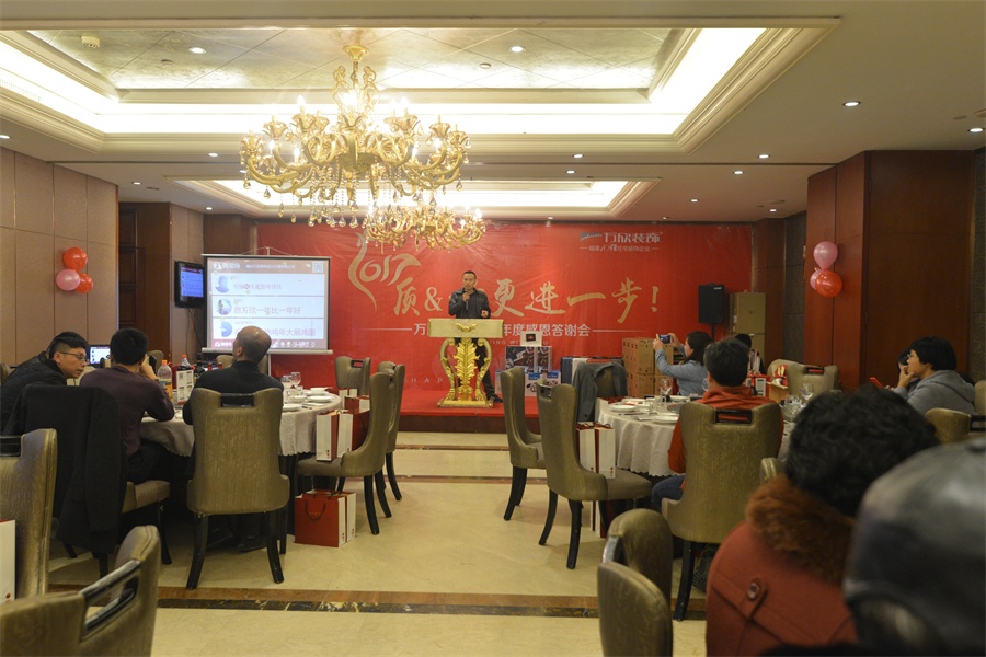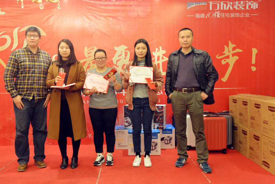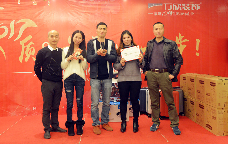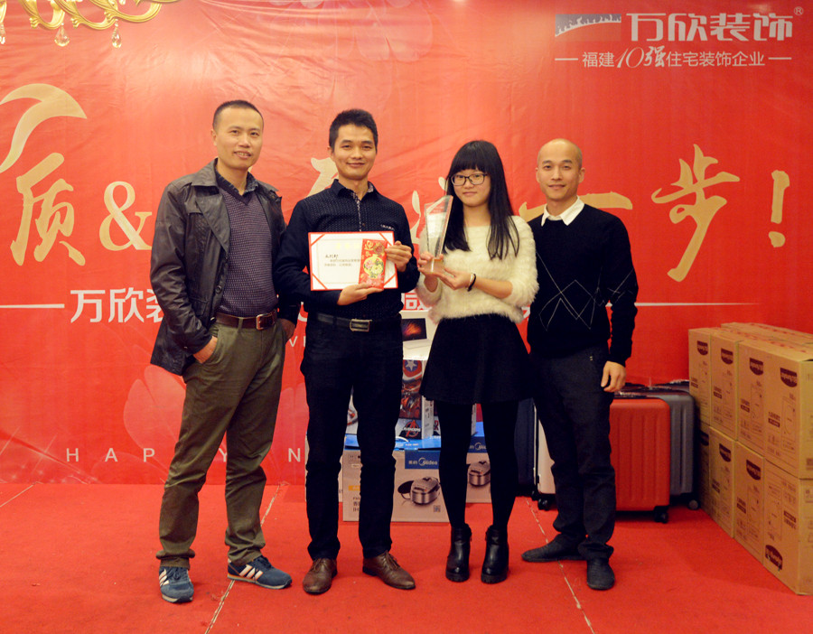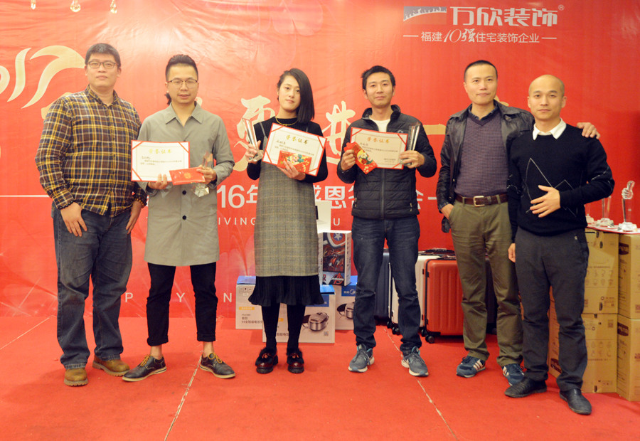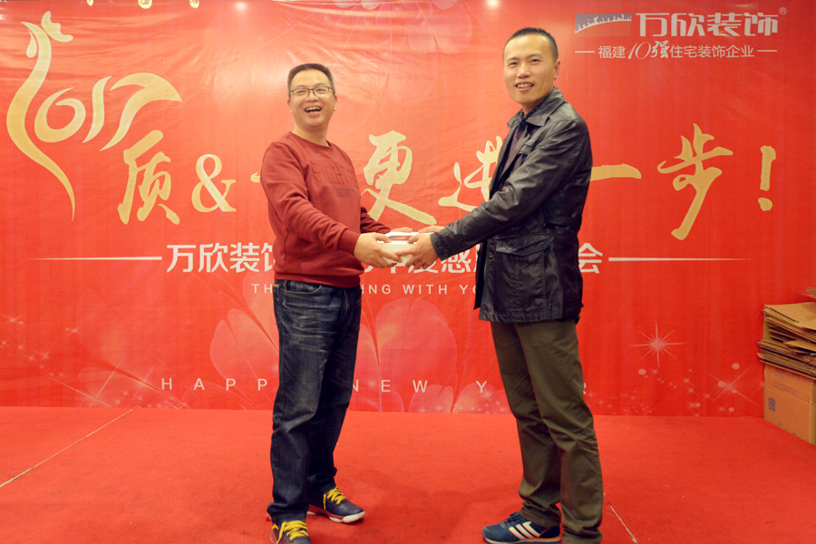 萬欣裝飾林總在年會中致辭,對于2016年度業(yè)績同比增長30%給予了高度肯定,并對公司整體的品質與服務給予了高度的評價。2016年,是豐收的一年;2017,我們翻開新的篇章,續(xù)寫輝煌。在質量和業(yè)績上更進一步,為客戶、為員工、為自己,攜手萬欣家人一起實現新目標。接著,江總也對萬欣裝飾2016年收獲的輝煌成就進行簡單的總結。